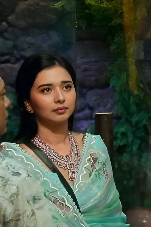 Aqua Blue Stone Necklace Set with Matching Earrings | Silver Finish Statement Jewellery for Women