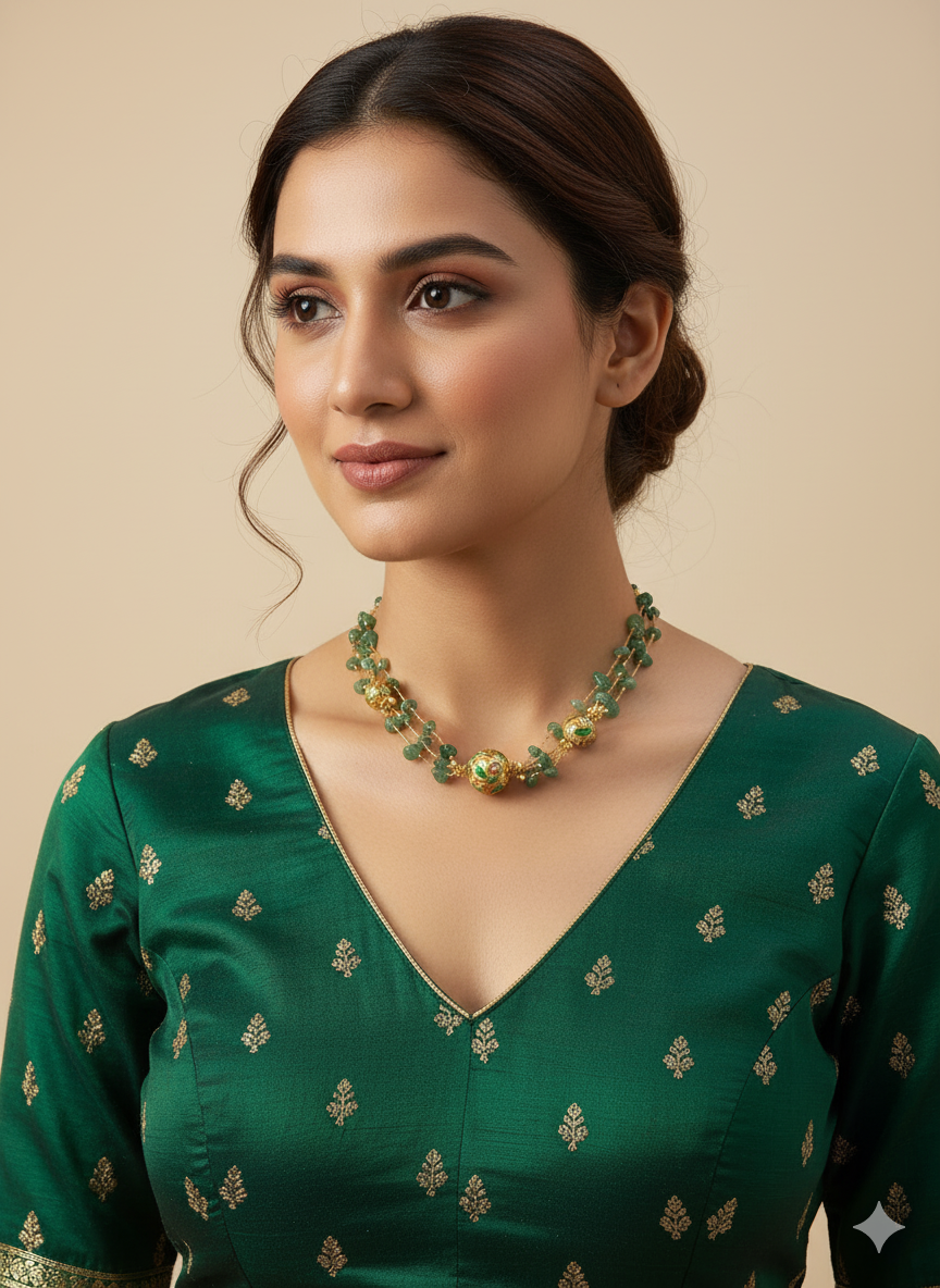 Bubble Stone Meena Pearl Layering Chain – Elegant Green & Gold Necklace