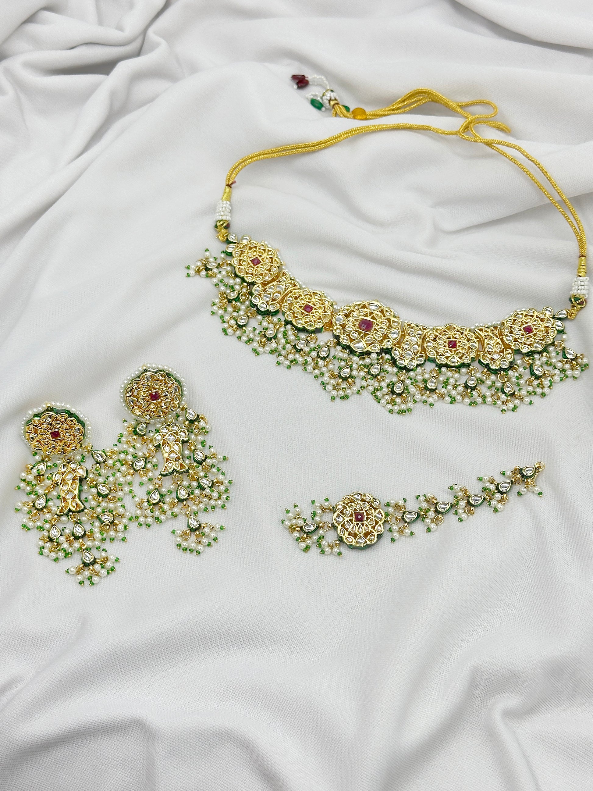 Stones: Kundan, red stones, pearls & green beads