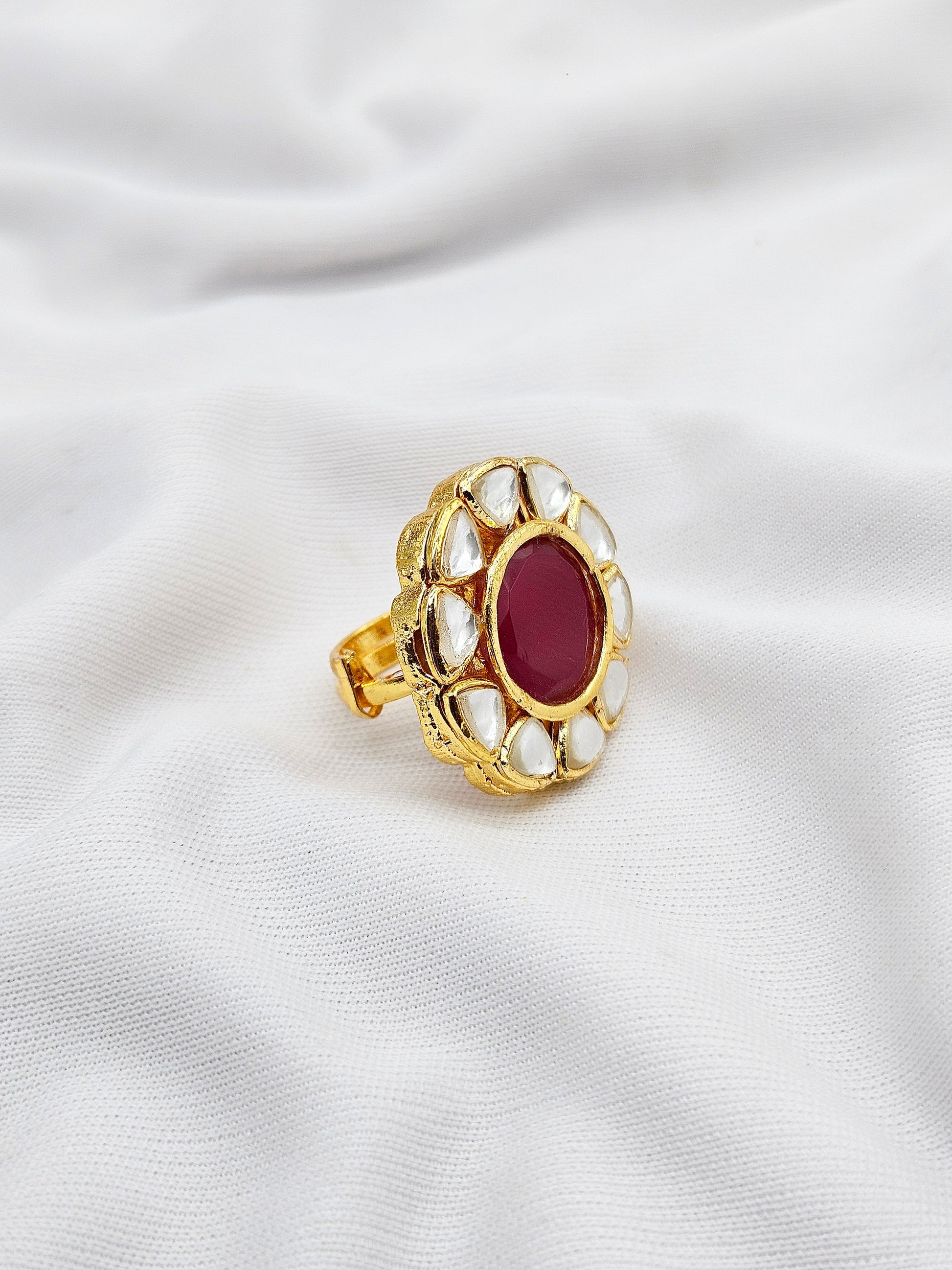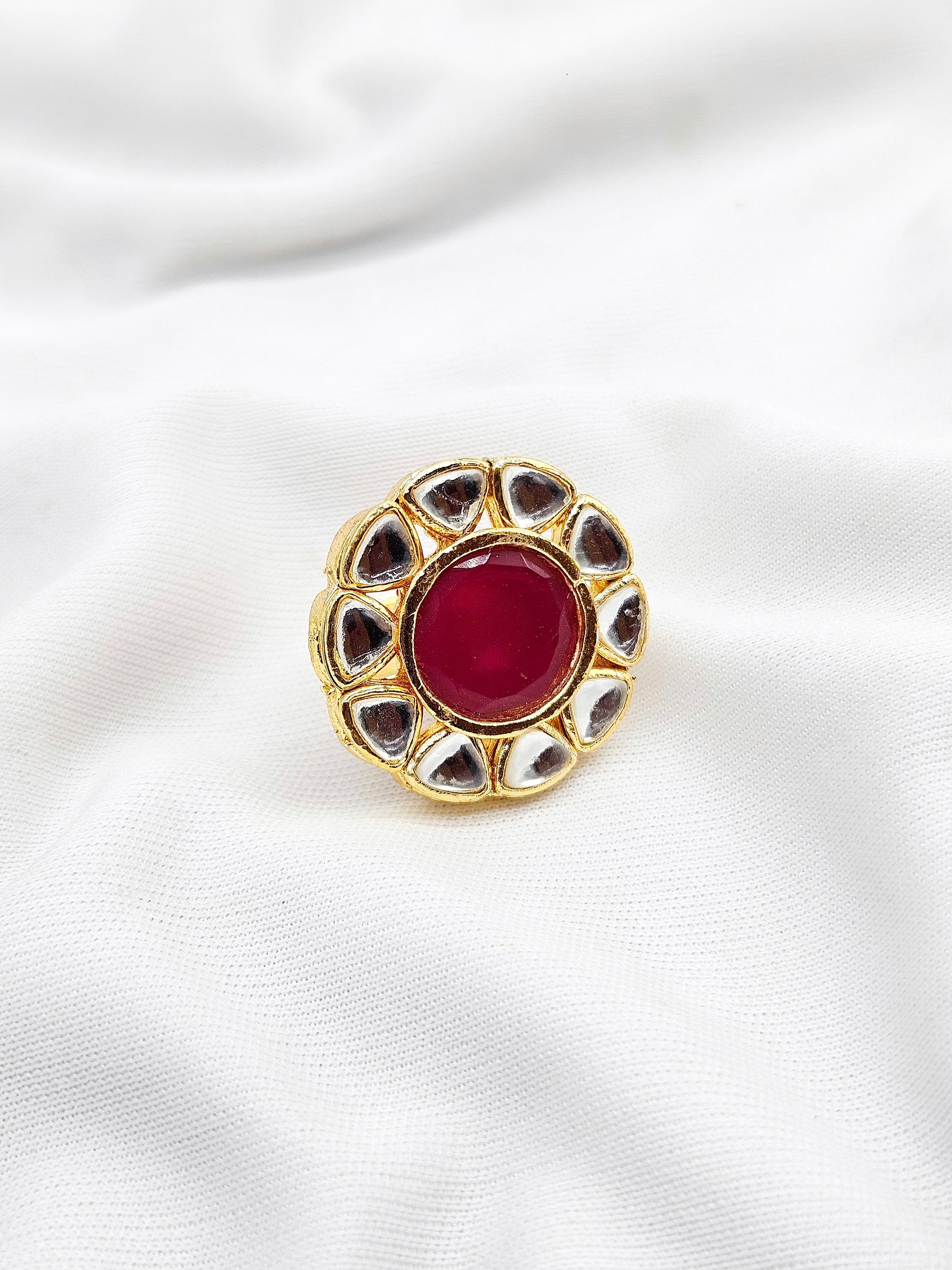 Lalithaa Red Kundan Adjustable Ring ❤️✨